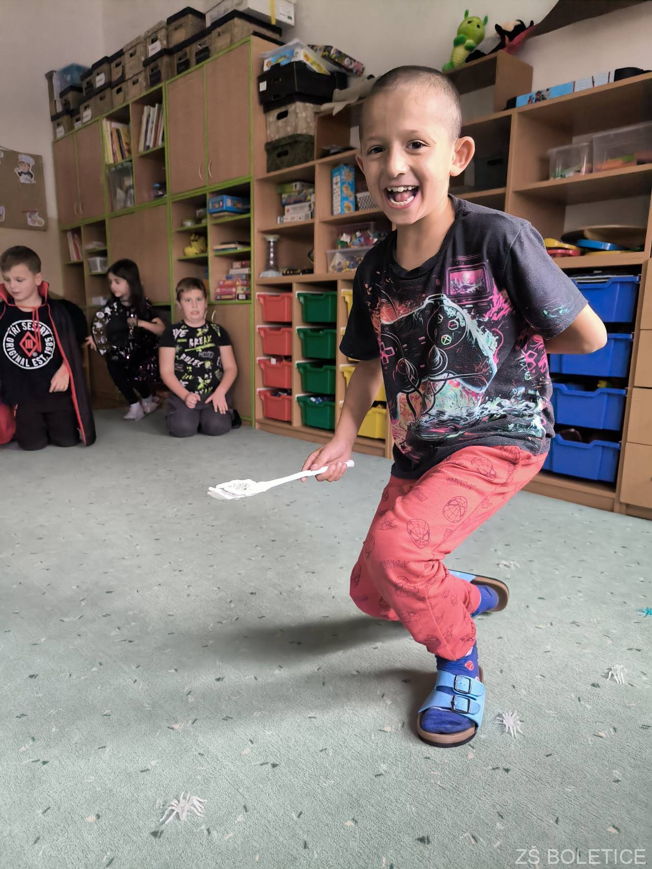 I v družině jsme si připomněli historii a zvyky tradičnho podzimního svátku. Celý týden jsme si vyprávěli a vyráběli na téma Halloween. Paní vychovatelky připravili hry a soutěže s oblíbenými tématickými rekvizitami a děti se svými rodiči se zapojili maskami, převleky a líčením. Moc děkujeme všem, kteří se podíleli na příjemném odpoledni plném smíchu, přátelství a zážitků.