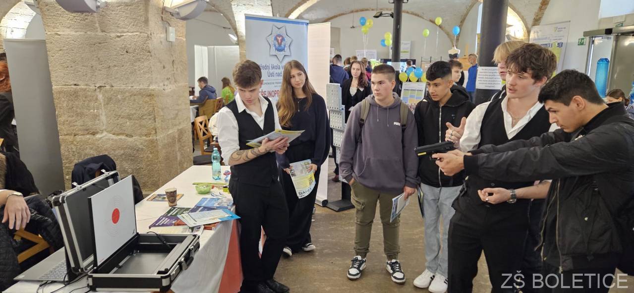 Již od brzkých ranních hodin proudily do děčínského Pivovaru stovky žáků z celého okresu, aby se zorientovali v široké nabídce středních škol, gymnázií a odborných učilišť. Naši žáci, doprovázeni třídními učiteli a výchovným poradcem, měli jedinečnou příležitost osobně se setkat se zástupci jednotlivých škol, jejich studenty i pedagogy. Veletrh byl přehlídkou nepřeberného množství studijních oborů. Na stáncích se prezentovaly školy technického zaměření, které lákaly na moderní dílny a spolupráci s předními firmami v regionu. Nechyběly ani humanitně a umělecky zaměřené školy. Gymnázia představovala své studijní programy s důrazem na přípravu k vysokoškolskému studiu, zatímco střední odborné školy se zaměřením na design, grafiku či pedagogiku ukazovaly kreativní práce svých studentů. Velký zájem budily také obory z oblasti zdravotnictví a sociálních služeb, kde si žáci mohli na modelech vyzkoušet základy první pomoci. Kromě samotných škol se na veletrhu prezentovali i významní regionální zaměstnavatelé. Žáci tak získali cennou představu o tom, jaké profese jsou v jejich okolí žádané a jaké jsou možnosti budoucího uplatnění po absolvování konkrétních oborů. Zástupci firem ochotně odpovídali na dotazy týkající se praxí během studia i kariérních příležitostí pro absolventy. Pro nerozhodnuté žáky byl k dispozici stánek kariérového poradenství, kde odborníci z pedagogicko-psychologické poradny a úřadu práce pomáhali s výběrem nejvhodnějšího oboru na základě zájmů a předpokladů každého jednotlivce.