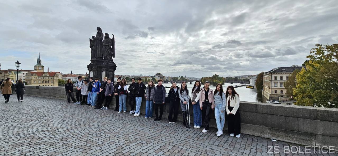 V pondělí 6. října se žáci deváté třídy naší školy vydali v rámci výuky občanské výchovy na dlouho očekávanou exkurzi do hlavního města. Hlavním bodem programu měla být návštěva Senátu Parlamentu České republiky, která jim měla přiblížit fungování jedné z klíčových institucí našeho státu. Jak už to tak ale bývá, ne vše jde vždy podle plánu. Hned ráno se objevil první mrak na jinak slibném dni. Porucha na trati způsobila, že vlak, kterým se žáci do Prahy dopravovali, nabral téměř dvouhodinové zpoždění. Tento nečekaný zádrhel bohužel znamenal, že pečlivě naplánovanou a objednanou exkurzi v Senátu nebylo možné stihnout. Po příjezdu na pražské hlavní nádraží tak bylo nutné rychle improvizovat a vytvořit nový program. I přes počáteční zklamání se deváťáci nenechali odradit. Vydali se podle původního plánu metrem na Malou Stranu, pevně odhodlaní si den v Praze co nejvíce užít. Sídlo horní komory parlamentu, Valdštejnský palác, si tak prohlédli alespoň zvenčí a plně si vynahradili zrušenou prohlídku procházkou po přilehlé, nádherně upravené Valdštejnské zahradě s jejími pávy a impozantní salou terrenou. Po krátkém odpočinku v tomto oáze klidu uprostřed rušného města se skupina vydala Sněmovní ulicí na malebné Malostranské náměstí s dominantou chrámu sv. Mikuláše. Odtud už jejich kroky směřovaly na Karlův most, kde se kochali pohledem na Pražský hrad a sochy lemující tento historický skvost. Cesta pokračovala na Staroměstské náměstí, pulzující srdce Prahy, a dále Celetnou ulicí, jednou z nejstarších pražských ulic, kolem majestátní Prašné brány a secesního klenotu, Obecního domu. Cílem této části procházky bylo Náměstí Republiky. Zde, v Obchodním centru Palladium, zbyl čas už jen na krátký rozchod. Blížící se hodina odjezdu vlaku byla neúprosná. I když původní cíl exkurze, návštěva Senátu, naplněn nebyl, žáci si z Prahy odvezli cenné zkušenosti. Naučili se, že je důležité umět se přizpůsobit nečekaným situacím a že i neplánovaná procházka historickým centrem může být nesmírně obohacující. Den v Praze se tak proměnil v praktickou lekci nejen z občanské výchovy, ale i z řešení problémů a poznávání krás naší vlasti. P. Šimková
