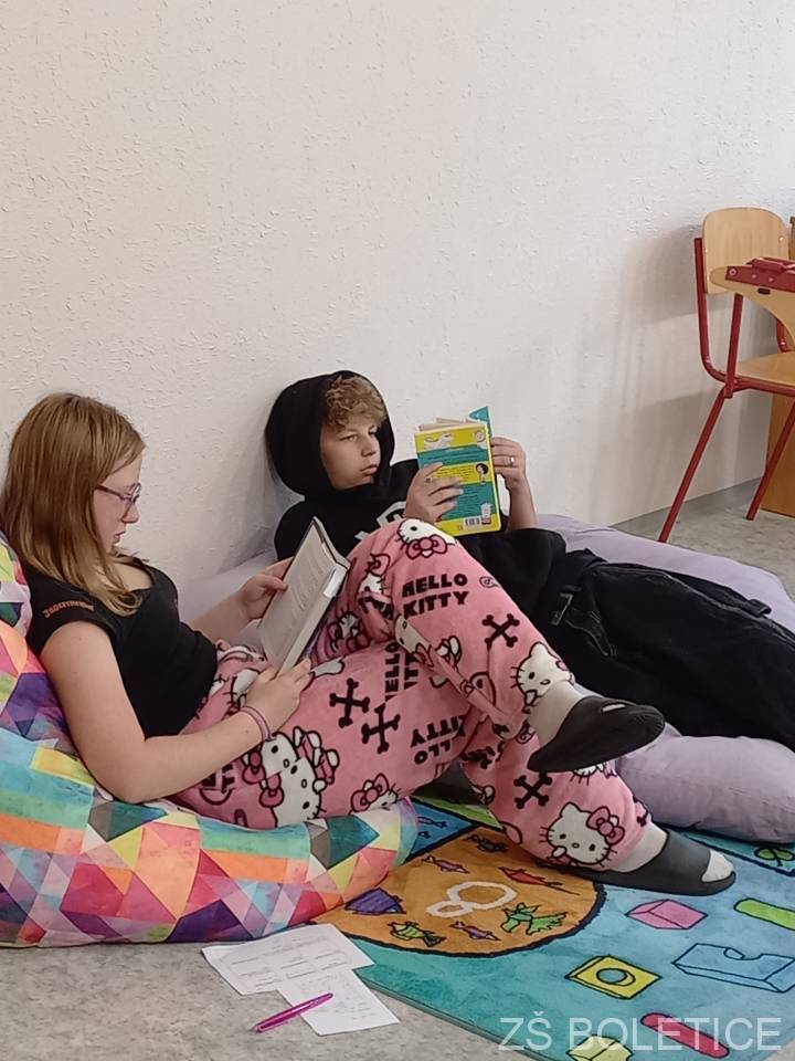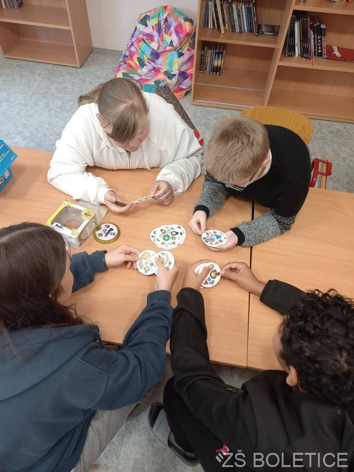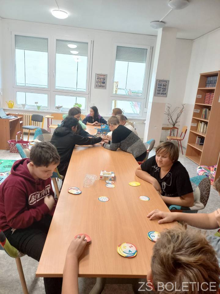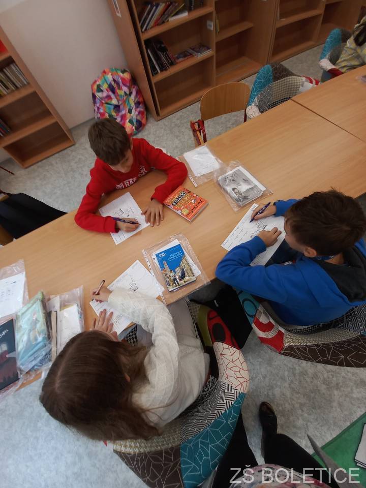 V průběhu měsíce září a října opět proběhlo 10 lekcí čtenářských dílen na 2. stupni. Žáci se začetli do knih podle svého výběru, plnili úkoly rozvíjející porozumění textu. Ke čtení jsme využili novou knihovnu na 1. patře, někomu vyhovovalo čtení ve třídě, jiní si hledali své místečko jinde. Mám radost, že především u sedmáků byl patrný pokrok oproti loňsku – jak ve výběru knih sobě na míru, tak v porozumění čtenému. Výsledkem byly i vizuálně pěkně vyplněné čtenářské organizéry se zajímavými poznámkami. Knihovnu jsme v závěru dílen využili i k hraní společenských her, které mají žáci k dispozici i během velkých přestávek. L. Šikýřová