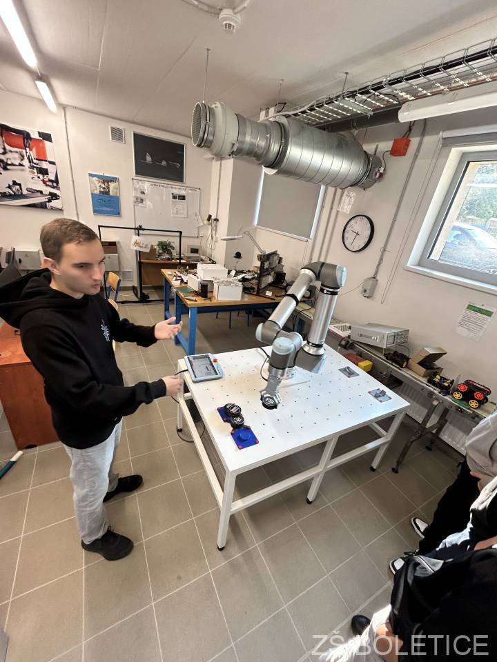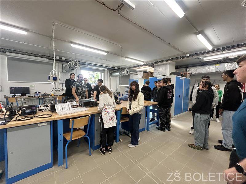 Teoretické poučky z hodin fyziky a pracovních činností dnes dostaly zcela nový rozměr. Ve čtvrtek 2. října 2025 dopoledne totiž žáci 8. a 9. ročníků naší základní školy vyměnili školní lavice za špičkově vybavené laboratoře Fakulty strojního inženýrství (FSI) Univerzity J. E. Purkyně v Ústí nad Labem. Cílem exkurze bylo přiblížit žákům svět moderních technologií a ukázat jim, že strojírenství není jen o montérkách a šmíru, ale o inovacích, robotech a kreativní práci. Hned po příchodu do moderního kampusu UJEP se studentů ujali odborní asistenti z fakulty, kteří je provedli několika specializovanými pracovišti. Žáci si prohlédli 3D tiskárny, které z plastového vlákna vrstvu po vrstvě vytvářely různé součástky. Mnozí si poprvé v životě mohli osahat výrobky vzniklé touto revoluční technologií. Neméně poutavá byla ukázka práce robotické ruky, která s neuvěřitelnou přesností manipulovala s předměty a demonstrovala tak budoucnost automatizace v průmyslu.