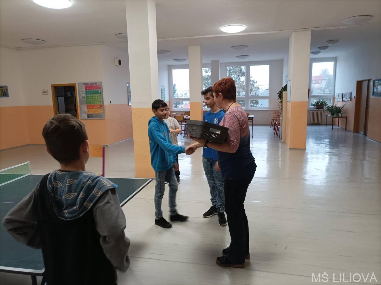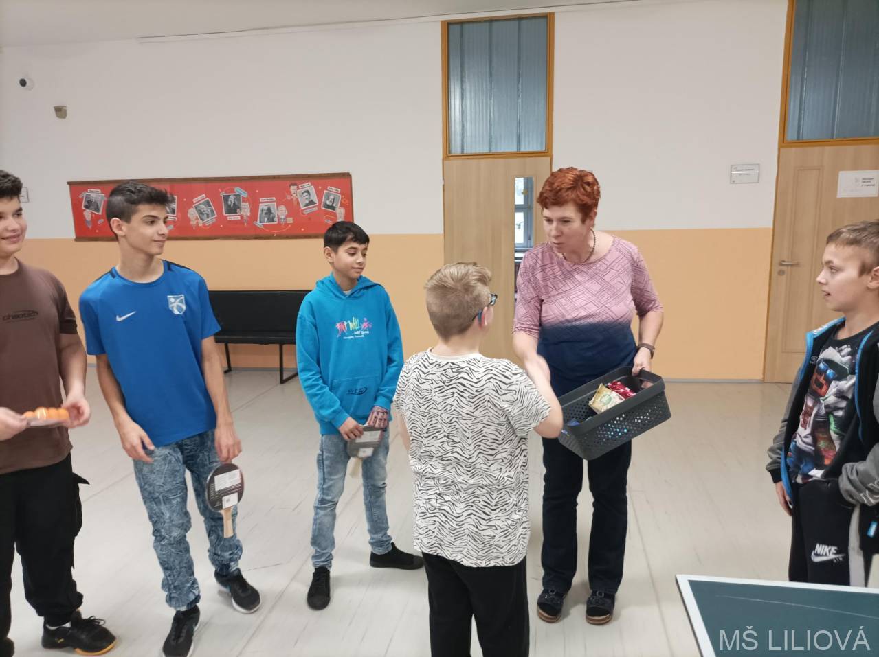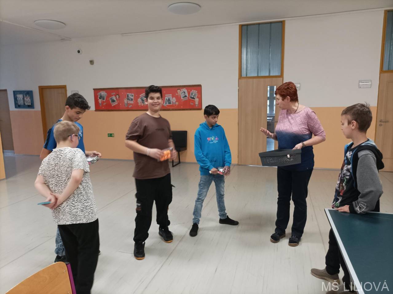 Ve středu 22. ledna proběhl turnaj ve stolním tenisu určený žákům 6. a 7. ročníku. Protože některé přihlášené skolila nemoc, nakonec se sešlo jen 5 sportovců, kteří se utkali systémem každý s každým. Vítězem se stal Antonín Kováč ze 7. A, který neprohrál ani jeden zápas. Na 2. místě skončil Ivan Dzurko ze 6. A a 3. místo obsadil Miroslav Zíka ze 7. B. Další místa obsadili Adrian Žiga ze 7. C a Adam Hoffmann ze 6. A. Po skončení turnaje si všichni účastníci vyzkoušeli i čtyřhry. Ve středu 5. února mají možnost poměřit své pingpongové dovednosti žáci 8. a 9. ročníku. L. Šikýřová