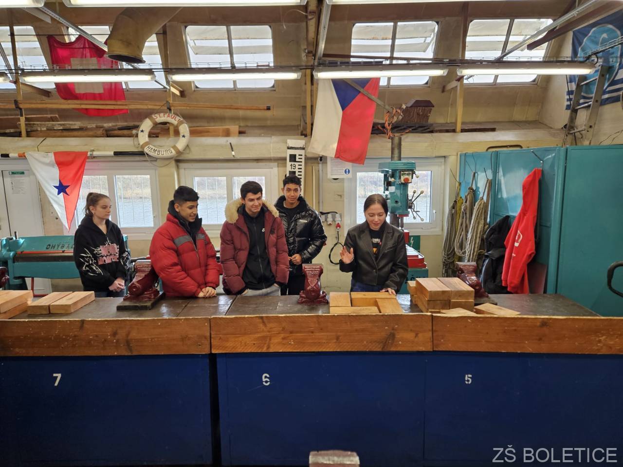 Střední škola lodní dopravy a technických řemesel v Děčíně otevřela své brány zvídavým žákům osmých a devátých tříd. Ve středu 12. listopadu se v rámci kariérového poradenství uskutečnila akce nazvaná „Zkus to sám“. Jejím cílem bylo seznámit mladé lidi s náročnou, ale zajímavou profesí v lodní dopravě a technických oborech. Dopolední program začal v hlavní budově školy. Žáci měli jedinečnou příležitost vyměnit školní lavice za opravdové dílenské prostředí. Pod dohledem zkušených mistrů odborného výcviku a středoškolských učňů si mohli vyzkoušet řadu manuálních dovedností a technických postupů, které jsou klíčové pro budoucí lodníky, strojníky, či obráběče. Druhá část programu pokračovala na školní cvičné lodi, která je kotvena u břehu Labe. Na lodi si žáci mohli prohlédnout strojovnu, vyzkoušeli si vázání lodních uzlů, házení lanem. Žáci si prakticky vyzkoušeli i další dovednosti některých oborů - instalatéra či zedníka. Cílem akce bylo ukázat, že lodní doprava a s ní spojená řemesla nabízejí perspektivní uplatnění a vyžadují kombinaci zručnosti, technického myšlení a zodpovědnosti. Střední škola lodní dopravy a technických řemesel takto aktivně pomáhá žákům při rozhodování o jejich budoucí profesní dráze již několik let. Akce byla velmi povedená a žáci odcházeli plní dojmů. Moc děkujeme organizátorům. P. Šimková